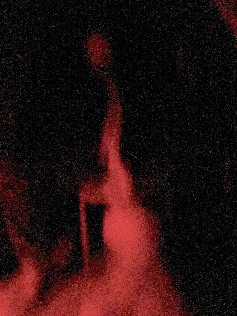 | Nasal ectoplasm volumes up on the floor and provides the base and the material for the building of a strange entity-like form growing and erecting in front of the cabinet (see details in video-clip). |