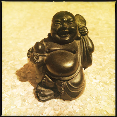 | Wooden Buddha as a symbol for much luck in 2017, materialized by spirit controls in May 2014 as a Birthday present |