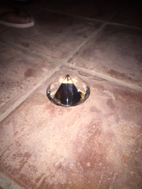 table (a turned around strong shining plaque was making the table glow