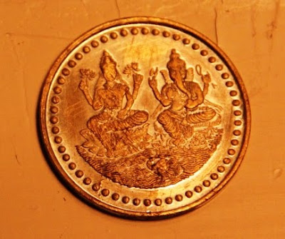 What was not known by anyone (apart from Sandra and I) who was present was that Sandra and I had (prior to the sitting) – whilst in the hotel – mentally asked for some communication from one of our own spirit guides and helpers. Winston’s was one of the spirit presences that we had mentally requested as he has been around us for so many years now. For us, this was wonderful evidence of the genuine nature of the amazing Felix Circle.Picture: An old Indian Coin for Wealth and Luck was apported through the agency of „Winston Churchill“, as the control „Hans Bender“ was stating.