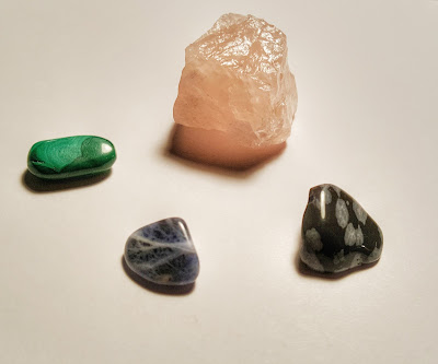 ‚Your stone has the color blue and a fragment of white. White, like the clouds in the sky! Both stones show the connection of nature to the sky above you! Place the Stone in front of you!‘