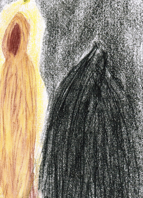 Sitter C.W. did draw this and wrote: ‚I have received very important information and healing has happened (the night before she attended a healing séance also), so that my trust in God and the spiritual world could and can grow further. I have the feeling that something has „healed“! I have the feeling that this was caused by Hans and his information but also by the materialisation of the Guardian. Thanks to all involved!‘